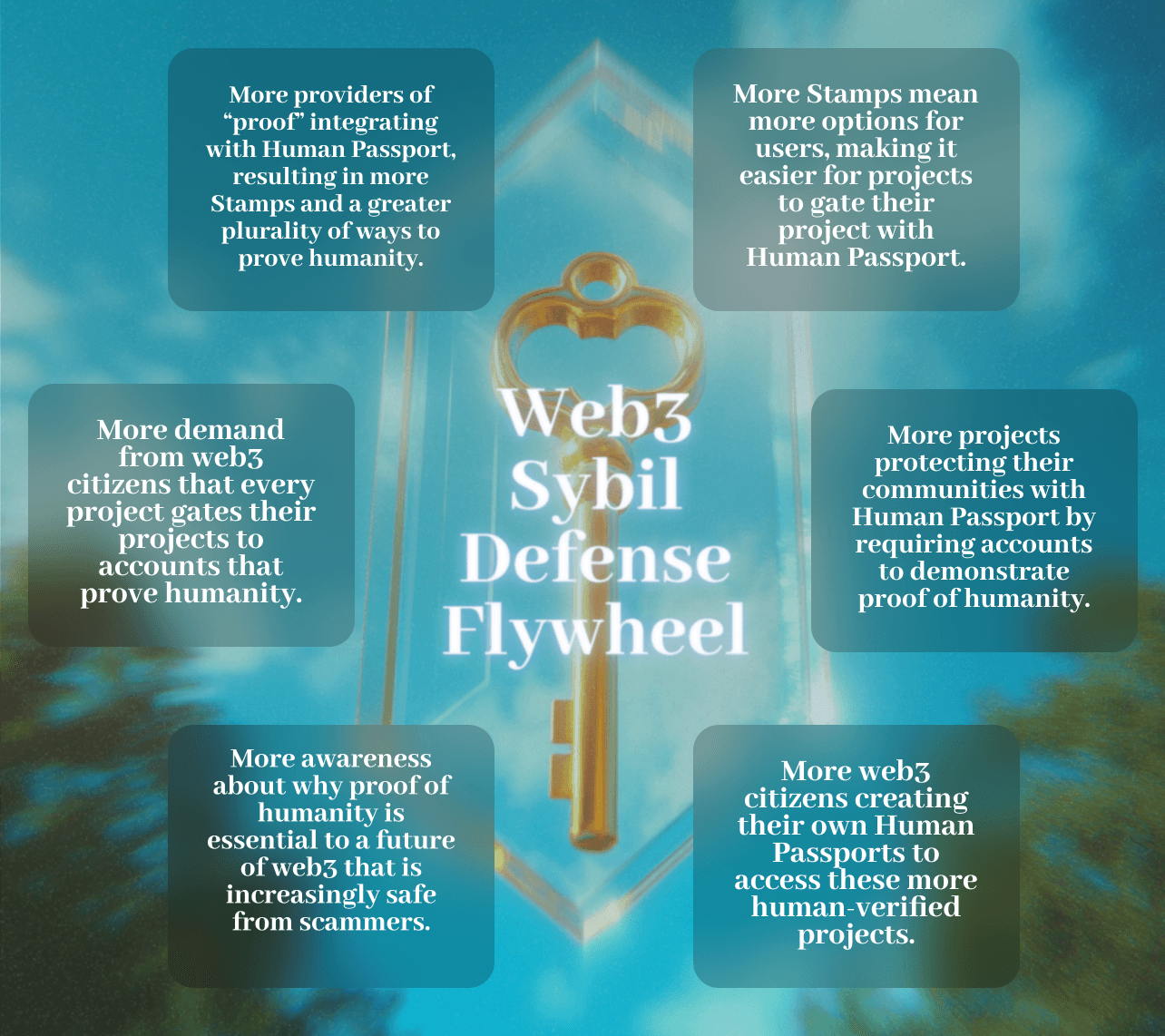 When communities gate their projects with this defense, and more users create their Passport, they collectively help build the decentralized "Web3 Sybil Defense Flywheel", making Passport faster and more reliable.